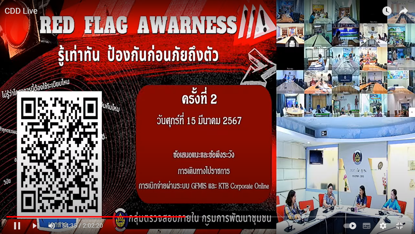 สามารถรับชมย้อนหลังได้ทาง CDD Live : ประชุมโครงการ Red Flag Awareness : รู้เท่าทัน ป้องกันก่อนภัยถึงตัว ครั้งที่ 2