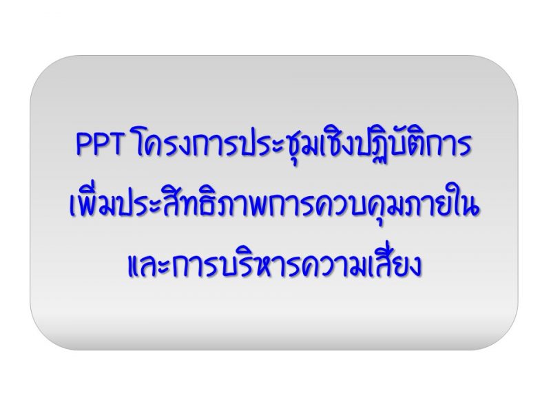 PPT โครงการประชุมเชิงปฏิบัติการเพิ่มประสิทธิภาพการควบคุมภายในและการบริหารความเสี่ยง