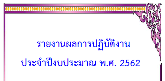 รายงานผลการปฏิบัติงานประจำปีงบประมาณ พ.ศ. 2562