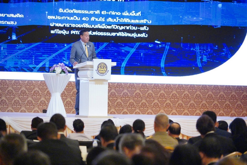 “จากความท้าทายที่กล่าวไปทั้งหมด รัฐบาลนี้เราจะ Take on actions อย่างจริงจัง ดำเนินนโยบายร่วมกับทั้งราชการทุกภาคส่วน และผลักดันเอกชนทุกระดับ เพื่อรับมือกับความท้าทายนี้ในระยะสั้น รัฐบาลให้ความสำคัญ 3 ประการเร่งด่วนด้วยกัน คือการฟื้นฟูรายได้ ดูแลค่าใช้จ่ายของประชาชน และเดินหน้าแก้ไขรัฐธรรมนูญ จึงขอให้ทุกหน่วยงานพิจารณาการลงทุนที่เหมาะสมเพื่อนำเทคโนโลยีมาใช้ เช่น ดำเนินการการเชื่อมฐานข้อมูลของประชาชนเป็นฐานเดียวกัน ใช้ระบบปัญญาประดิษฐ์และ Machine Learning เพื่อเพิ่มความสามารถ ใช้ระบบการจ่ายเงินที่ตรวจสอบได้ เพื่อป้องกันการทุจริตและเพิ่มความโปร่งใสในการทำงานของรัฐ การปฏิสัมพันธ์ระหว่างราชการกับประชาชน จะต้องทำให้ไม่มีคนมาต่อคิวรอตั้งแต่เช้า ต้องมีแผนปรับปรุงการให้บริการ กำจัดเจ้าหน้าที่ที่ทำตัวเป็นนายประชาชน เรียกรับสินบน ซึ่งผมรับไม่ได้ และต้องปรับปรุงขั้นตอนการบริหารภายในราชการด้วยกันเอง เพื่อทำให้งานทำได้เร็วยิ่งขึ้น เพิ่ม Productivity ของทั้งระบบ ให้สะท้อนไปสู่บริการประชาชนที่ดียิ่งขึ้นไปอีก ซึ่งเป้าหมายของเรา ด้านเศรษฐกิจ คือการทำให้ GDP ของประเทศโตเฉลี่ย 5% ตลอด 4 ปีนี้ และทำให้รายได้ขั้นต่ำให้ถึง 600 บาทในปี 2570 เป็นจุดเริ่มต้นของแผนการมุ่งหน้าสู่การเป็นประเทศรายได้สูง ขอทุกภาคส่วนร่วมกันดูแลประชาชนทุกภาคส่วนให้มีชีวิตอย่างมีความสุข มีสวัสดิการที่เหมาะสม ทำให้เขาเลี้ยงชีพได้อย่างสมศักดิ์ศรีด้วย หลาย ๆ อย่างที่ทำมาดีแล้ว ก็ขอให้ทำต่อไป และขอให้เปิดใจ รับฟังเสียงของประชาชน เพื่อนำไปปรับปรุง” นายเศรษฐาฯ กล่าวในช่วงต้น