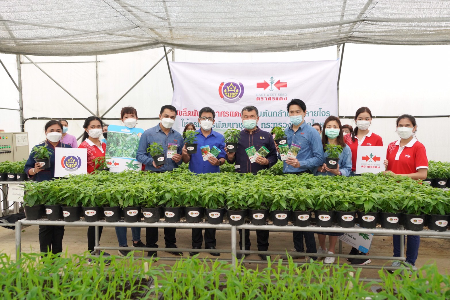 นายสุทธิพงษ์ จุลเจริญ อธิบดีกรมการพัฒนาชุมชน กล่าวว่า กรมการพัฒนาชุมชน กระทรวงมหาดไทย ขอขอบคุณบริษัท อีสเวสท์ ซีด จำกัด (เมล็ดพันธุ์ตราศรแดง) ได้รับความกรุณาร่วมเป็นภาคีเครือข่ายกับเรามาเป็นระยะเวลากว่า 2 ปี ตั้งแต่การแพร่ระบาดโควิด-19 รอบที่ 1 จากการขับเคลื่อนแผนปฏิบัติการ 90 วัน ปลูกผักสวนครัว เพื่อสร้างความมั่นคงทางอาหาร โดยการน้อมนำแนวพระราชดำริของสมเด็จพระกนิษฐาธิราชเจ้า กรมสมเด็จพระเทพรัตนราชสุดาฯ สยามบรมราชกุมารี ทรงสร้างพื้นที่ต้นแบบอย่างหลากหลายพื้นที่ เช่นที่ ตำบลโก่งธนู อำเภอเมืองลพบุรี จังหวัดลพบุรี ภายใต้โครงการ “บ้านนี้มีรัก ปลูกผักกินเอง” รณรงค์ให้ทุกครัวเรือนปลูกพืชผักสวนครัว สร้างความมั่นคงทางอาหาร เพื่อให้เกิดการพึ่งพาตนเอง โดยใช้พื้นที่ว่างปลูกพืชผักสวนครัวไว้รับประทานอย่างปลอดภัย สามารถลดรายจ่ายในครัวเรือน มีคุณภาพชีวิตที่ดีขึ้น จากความร่วมมือกับบริษัท อีสเวสท์ ซีด จำกัด (เมล็ดพันธุ์ตราศรแดง) ในการช่วยเหลือพี่น้องคนไทยต่อการส่งมอบเมล็ดพันธุ์ผัก ร่วมกันรณรงค์การซื้อเมล็ดพันธุ์ซื้อ 1 แถม 1 ซึ่งได้รับการตอบรับเป็นอย่างดีเยี่ยม ทำให้คนไทยกว่า 12 ล้านครัวเรือนเกิดการตื่นตัวปลูกพืชผักสวนครัวเป็นอย่างมาก ต่อมาเกิดการแพร่ระบาดหนักเป็นรอบที่ 2 และ รอบที่3 ทำให้มีผู้ติดเชื้อเป็นจำนวนมากและรวดเร็ว ทำให้ยารักษาโรคไม่เพียงพอ บริษัทฯ จึงให้ทีม R&D วิจัยและคิดค้นในเรื่องของพืชสมุนไพร ฟ้าทะลายโจร ด้วยทีมงานผู้เชี่ยวชาญ เพื่อให้ได้เมล็ดพันธุ์ฟ้าทะลายโจรที่มีคุณภาพ เนื่องจาก ฟ้าทะลายมีสารแอนโดกราโฟไลด์ มีสรรพคุณช่วยผู้ป่วยที่มีอาการไม่หนักโดยควบคู่กับการรักษาแพทย์แผนปัจจุบัน ทางกรมการพัฒนาชุมชนจึงส่งเสริมการปลูกพืชสมุนไพร ขิง ข่า ตะไคร้ มะนาว มะกรูด ซึ่งมีสรรพคุณ ป้องกันไข้หวัด รวมถึงฟ้าทะลายโจร ควบคู่กับการปลูกพืชผักสวนครัวอย่างต่อเนื่อง