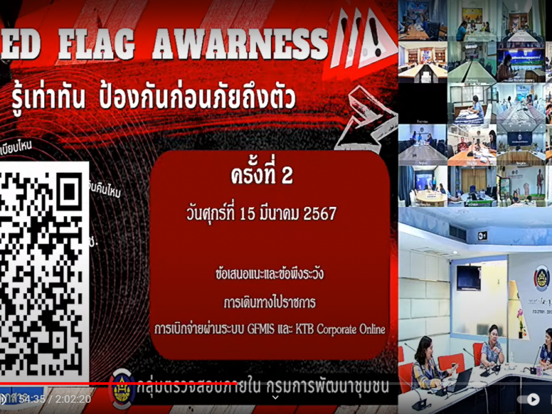 โครงการ Red Flag Awareness : รู้เท่าทัน ป้องกันก่อนภัยถึงตัว ครั้งที่ 2 ข้อเสนอแนะและข้อพึงระวังในการเดินทางไปราชการและการเบิกจ่ายผ่านระบบ GFMIS และ KTB Corporate Online
